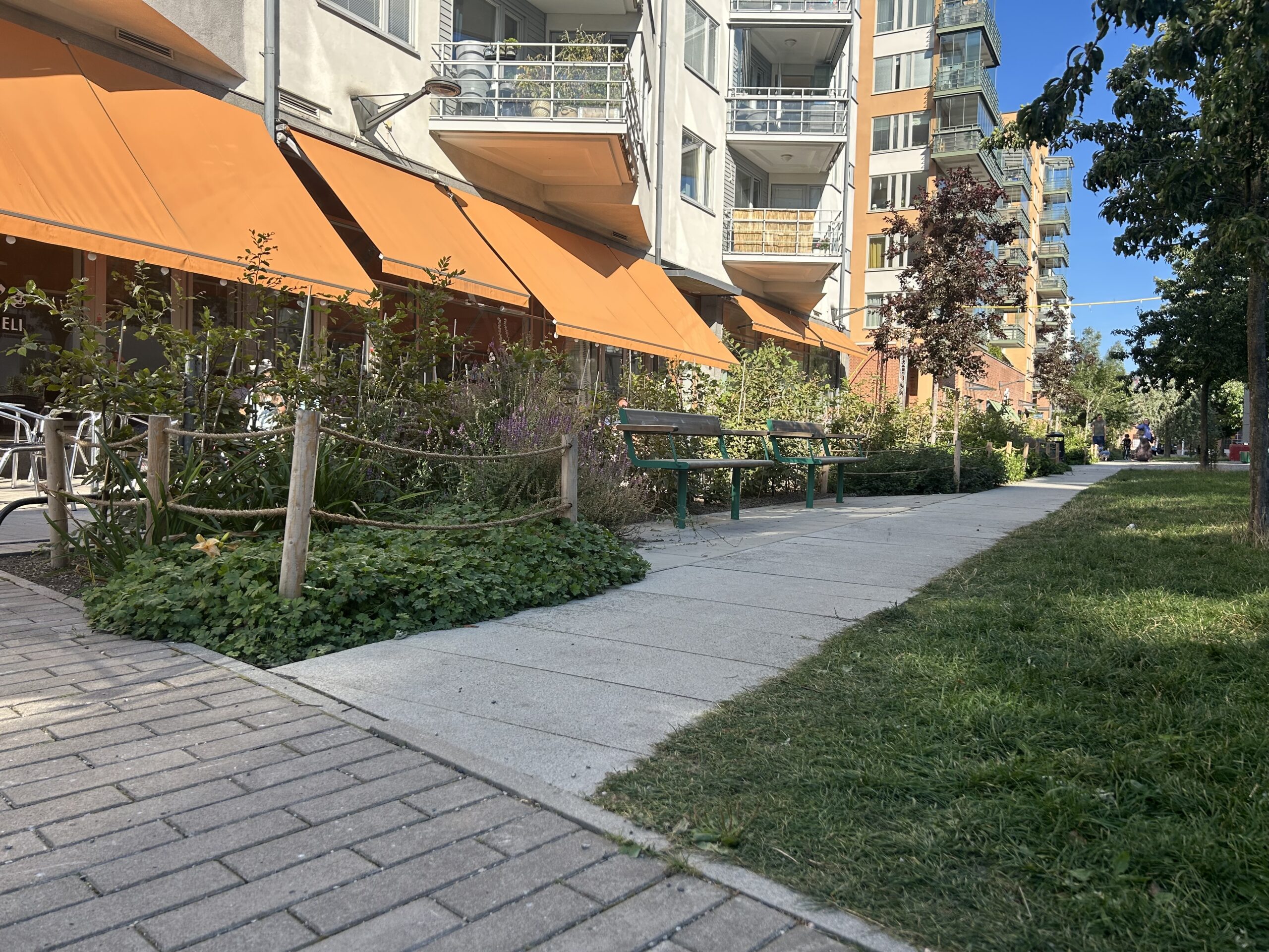 På Lilla Essingen i Stockholm har Luxtorget fått ett rejält uppsving. Torget byggdes i början av 00-talet i samband med utbyggnaden av Luxområdet. För att göra torget mer inbjudande har man valt att plantera fler träd längs torget och anlagt en grusbana för boulespel. Vi på Zurface är stolta över att ha levererat hällar i Bohus Tossene och murar i vår portugisiska granit Castro Daire längs hela platsen. Tillsammans med grönskan från de nyplanterade träden och växterna som omger hela torget har det blivit en mer levande mötesplats, där lokalbor gärna slår sig ned vid uteserveringarna för att umgås och koppla av.